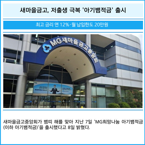 [프라임경제] 새마을금고중앙회가 뱀띠 해를 맞아 지난 7일 'MG희망나눔 아기뱀적금(이하 아기뱀적금)'을 출시했다고 8일 밝혔다.