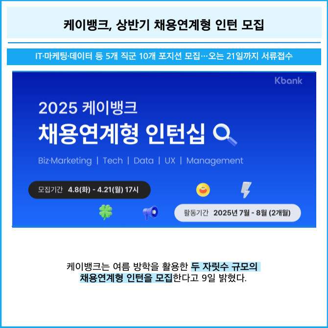 [카드] 케이뱅크, 상반기 채용연계형 인턴 모집