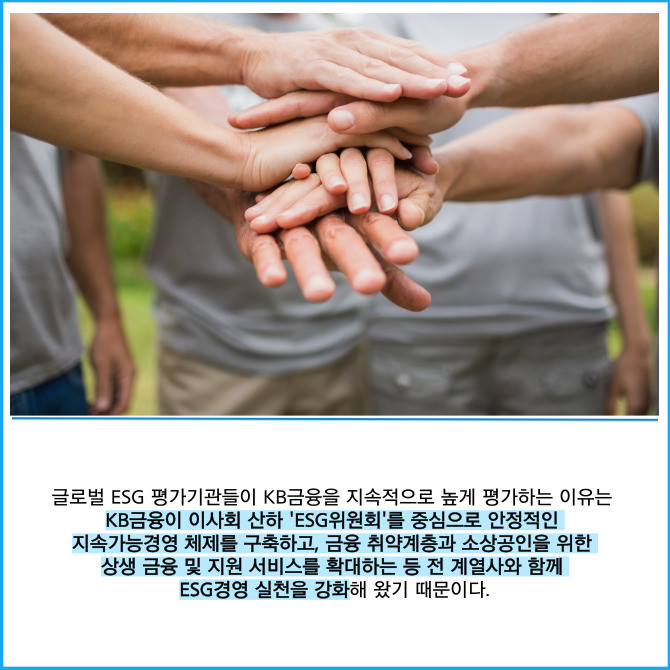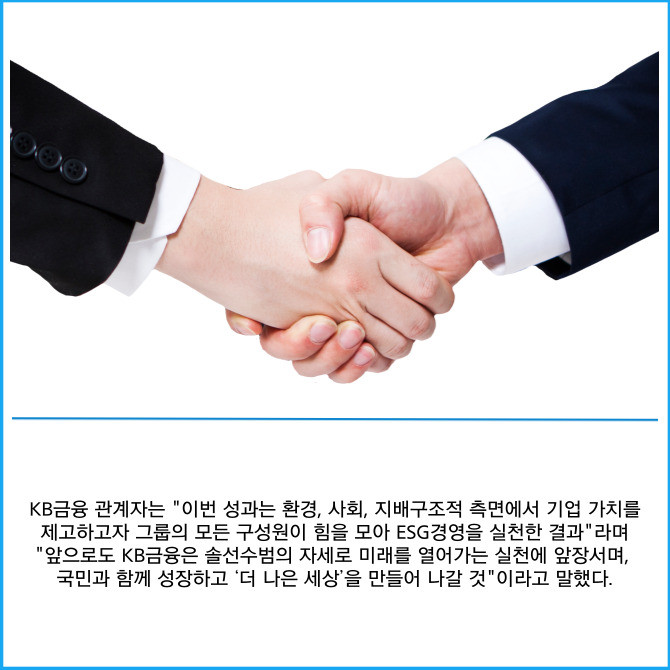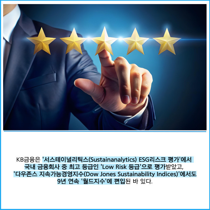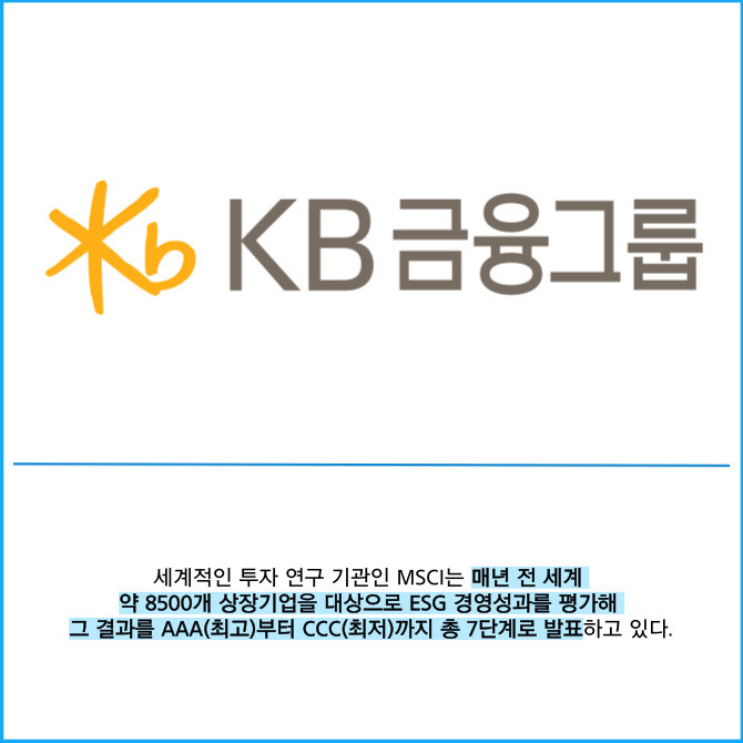 [프라임경제] KB금융그룹(105560)은 모건스탠리캐피털인터내셔널(MSCI)의 '2024년 MSCI ESG평가'에서 국내 금융회사 최초로 3년 연속 최상위 등급인 'AAA' 등급을 획득했다고 9일 밝혔다.