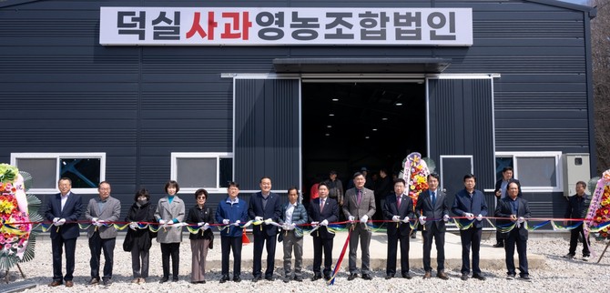 한수면 덕실사과영농조합법인은 지난 8일 덕곡리 330-2번지에서 김창규 제천시장, 박영기 제천시의회 의장, 도·시의원, 지역 기관·단체장, 주민 등 80여 명이 참석한 가운데 농산물 제조·가공·유통시설 준공식을 개최했다.