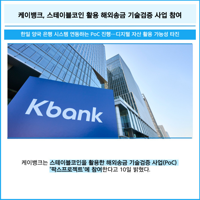 [카드] 케이뱅크, 스테이블코인 활용 해외송금 기술검증 사업 참여