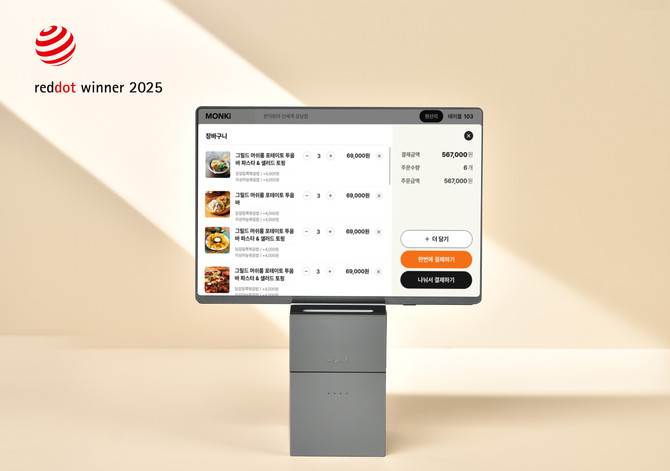 먼슬리키친의 먼키 무선올인원 테이블오더가 테이블오더 부문 세계 최초로 '레드닷 디자인 어워드'에서 2025년도 수상작에 선정됐다.
