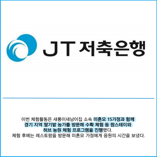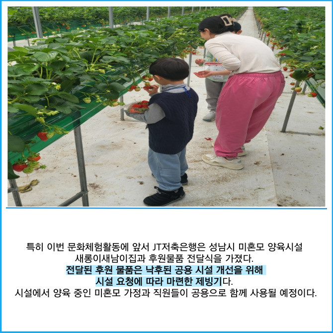 [카드] JT저축은행, 미혼모 양육시설 '새롱이새남이집'과 문화체험활동