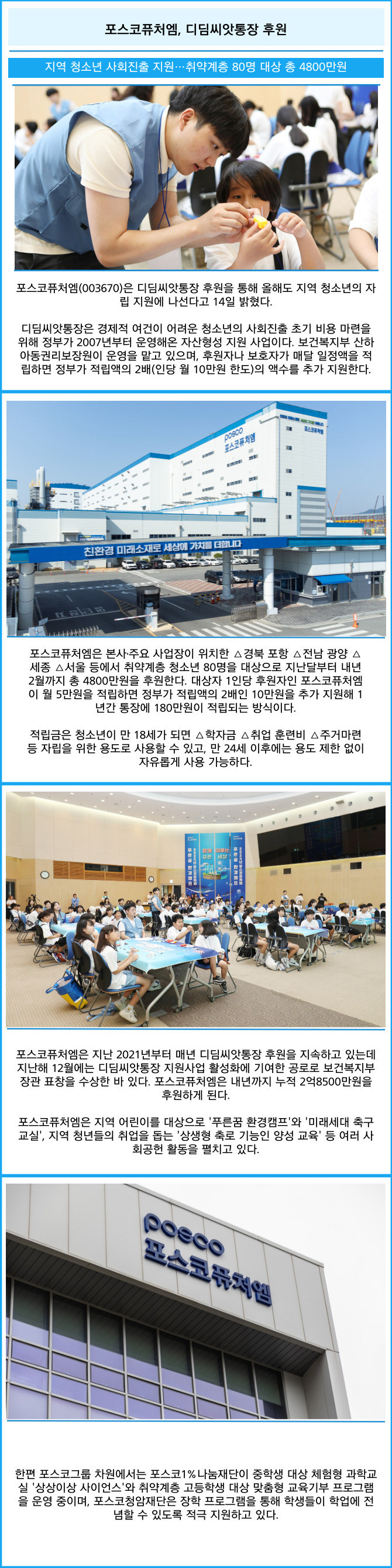 [프라임경제] 포스코퓨처엠(003670)은 디딤씨앗통장 후원을 통해 올해도 지역 청소년의 자립 지원에 나선다고 14일 밝혔다.