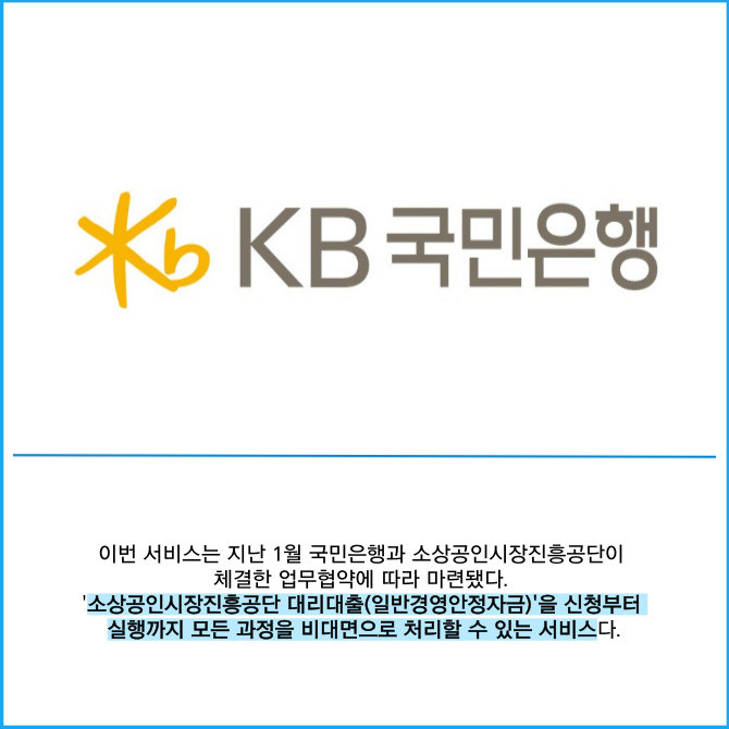 [프라임경제] KB국민은행은 소상공인의 금융 부담 완화와 편의성 증진을 위해 소상공인시장진흥공단과 연계해 '소상공인 정책자금대출' 비대면 서비스를 출시한다고 15일 밝혔다.