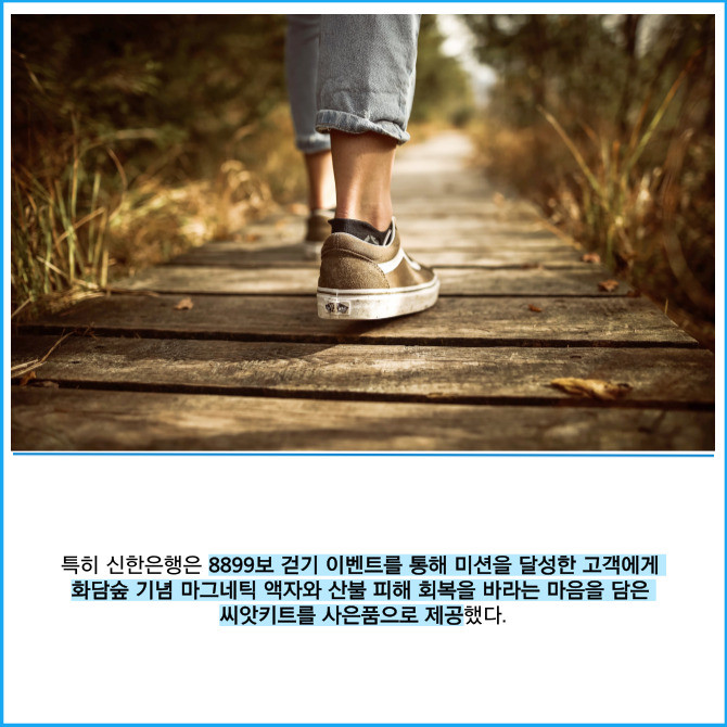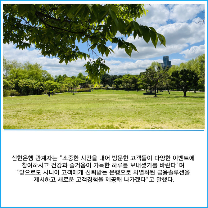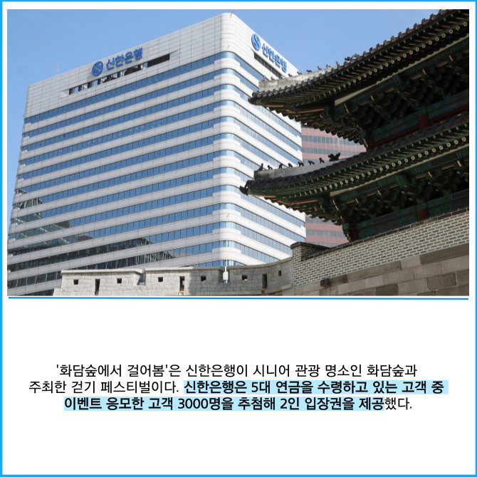 [프라임경제] 신한은행은 지난 14일 경기도 광주시 소재 화담숲에서 연금 수령 고객을 위한 감사 이벤트 '화담숲에서 걸어봄' 전관행사를 진행했다고 15일 밝혔다.