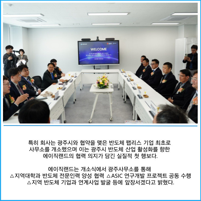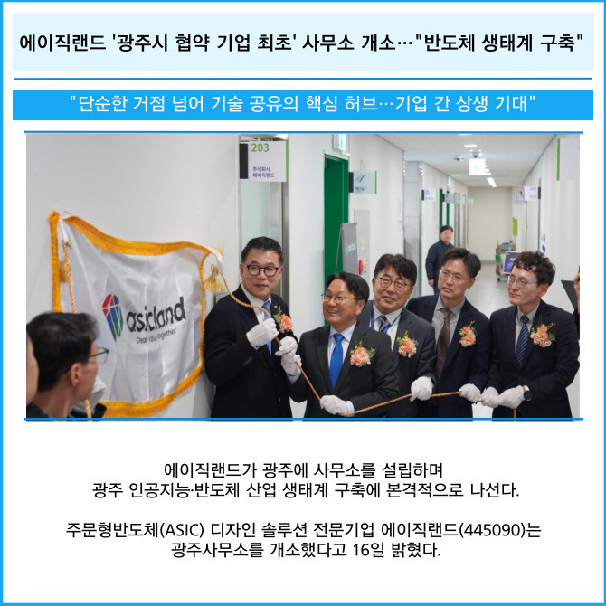 [카드] 에이직랜드 '광주시 협약 기업 최초' 사무소 개소…"반도체 생태계 구축"