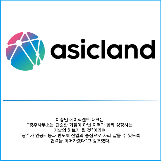 [프라임경제] 에이직랜드가 광주에 사무소를 설립하며 광주 인공지능·반도체 산업 생태계 구축에 본격적으로 나선다.
