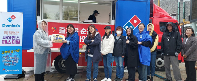 도미노피자가 4월 '과학의 달'을 맞아 아이부터 노인까지 전 세대가 과학기술을 즐길 수 있는 '2025 인천 사이언스 페스티벌'에 파티카를 통해 피자를 전달했다.