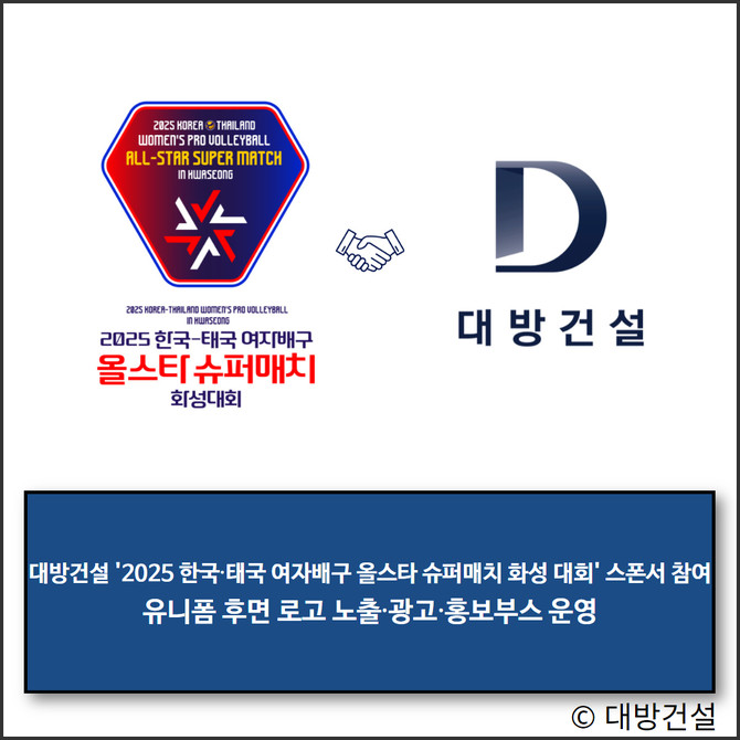 대방건설이 '2025 한국·태국 여자배구 올스타 슈퍼매치'의 전(前) 스폰서로 참여한다.
