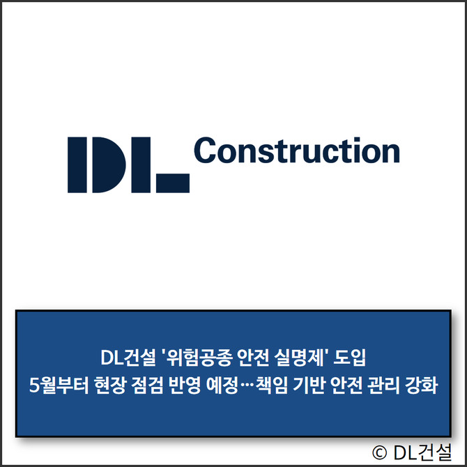 지난 1일 DL건설 최고안전책임자(CSO)는 전 임직원을 대상으로 특별 메시지를 발표했다. 이번 메시지에는 정부의 안전 정책 기조에 발맞춘 새로운 제도적 실천사항이 포함됐다. DL건설은 이러한 메시지에 발맞춰 2일부터 '위험공종 안전 실명제'를 전사적으로 도입, 현장 안전관리의 책임성을 한층 강화하고 있다.