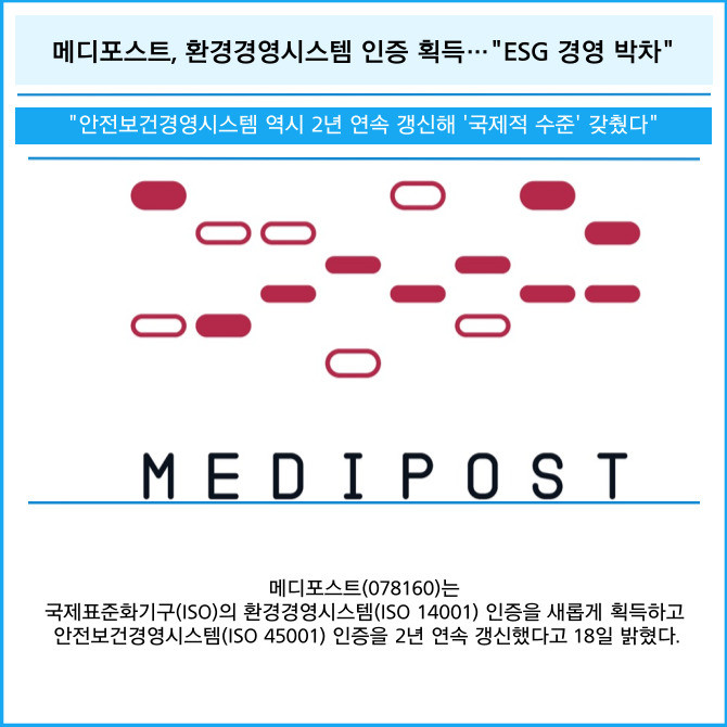 [카드] 메디포스트, 환경경영시스템 인증 획득…"ESG 경영 박차"