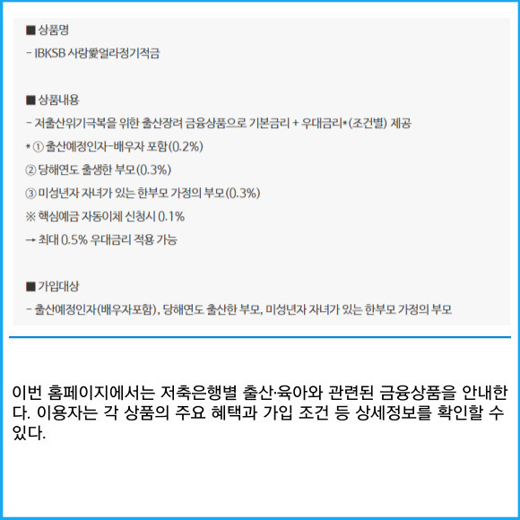 저축은행별 출산·육아 관련 금융상품 안내