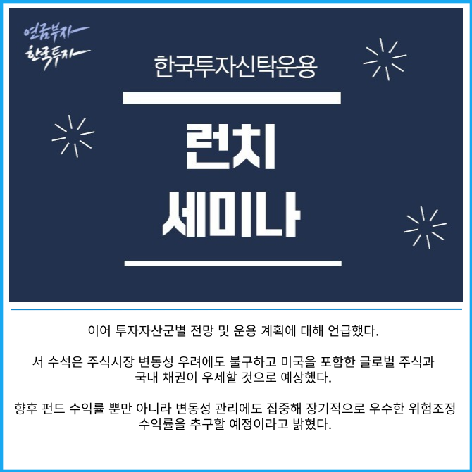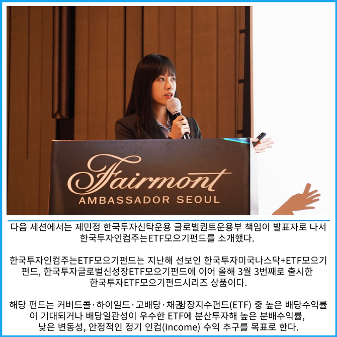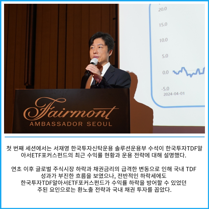 [프라임경제] 한국투자신탁운용은 21일 오전 서울 여의도 페어몬트 앰배서더에서 퇴직연금 사업자를 대상으로 '2025년 퇴직연금 세미나'를 개최했다고 밝혔다.