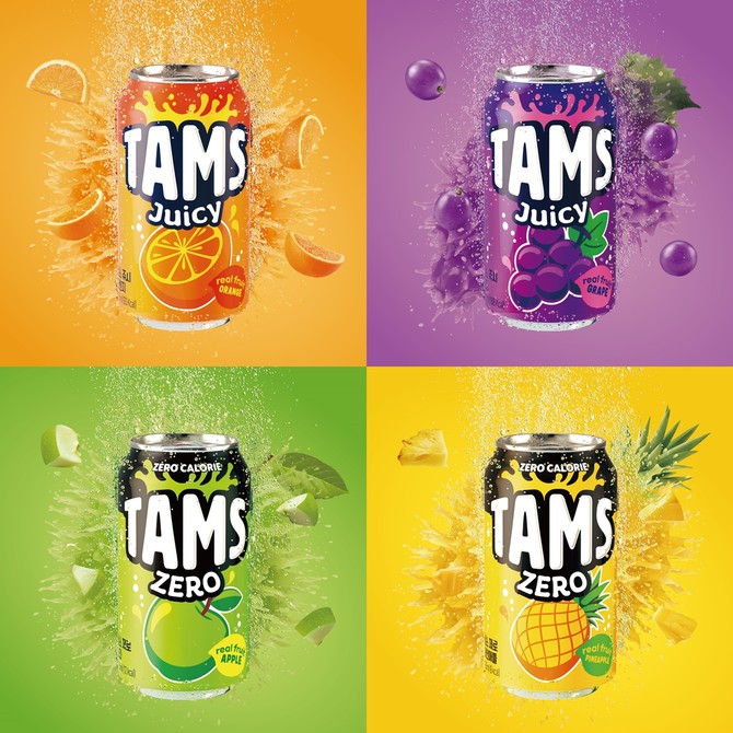 롯데칠성음료(005300)가 과일 탄산음료 '탐스(TAMS)'의 새로운 제품 '탐스 쥬시(TAMS JUICY)'와 더욱 맛있어진 '탐스 제로(TAMS ZERO)'를 발매했다.