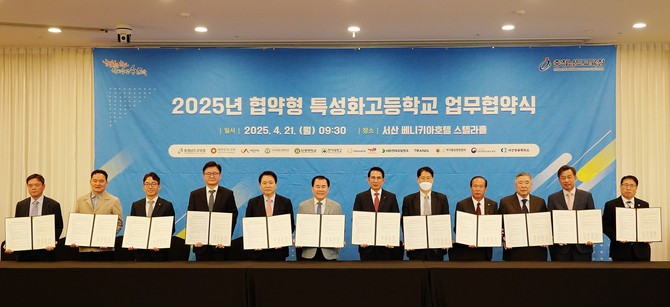 시는 지난 21일 베니키아호텔에서 이완섭 서산시장과 각 기관 대표들이 참석한 가운데 '2025 협약형 특성화고등학교 육성 업무 협약식'을 개최했다고 밝혔다. 이번 협약은 교육부가 주관하는 '협약형 특성화고등학교' 공모 신청을 위한 사전 준비 차원에서 마련됐다.
