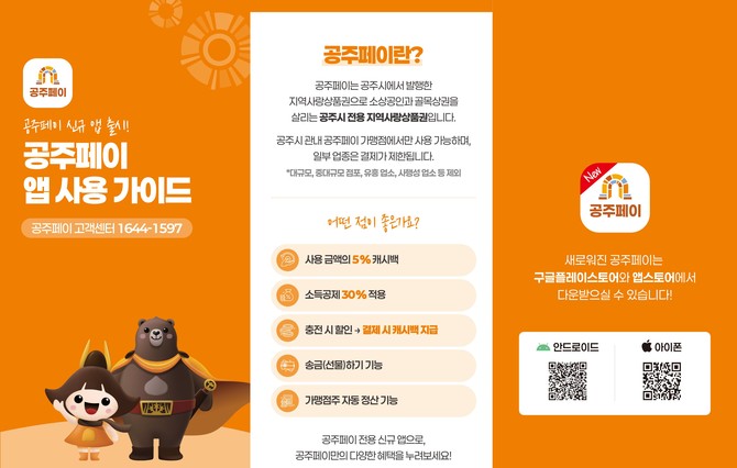 한편, 개편된 공주페이는 기존 선할인 방식에서 결제금액의 5%를 캐시백으로 돌려주는 방식으로 전환됐다. 이는 행정안전부의 '2024년 지역사랑상품권 발행지원사업 종합 지침'에 따른 조치로, 소비 유발 효과 및 정책 활용도 제고를 위한 것이다.