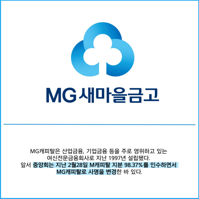 [프라임경제] 새마을금고중앙회는 지난 21일 이사회를 열고 자회사인 MG캐피탈에 2000억원 규모의 유상증자를 결정했다고 23일 밝혔다.