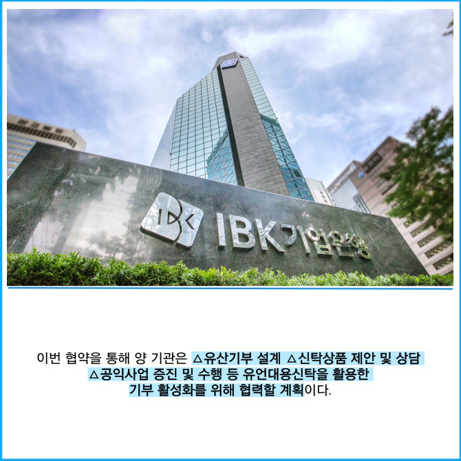 [프라임경제] IBK기업은행(024110)은 지난 23일 서울대학교 호암교수회관에서 서울대학교발전재단과 '유언대용신탁을 활용한 기부문화의 정착과 발전'을 위한 업무협약을 체결했다고 24일 밝혔다.