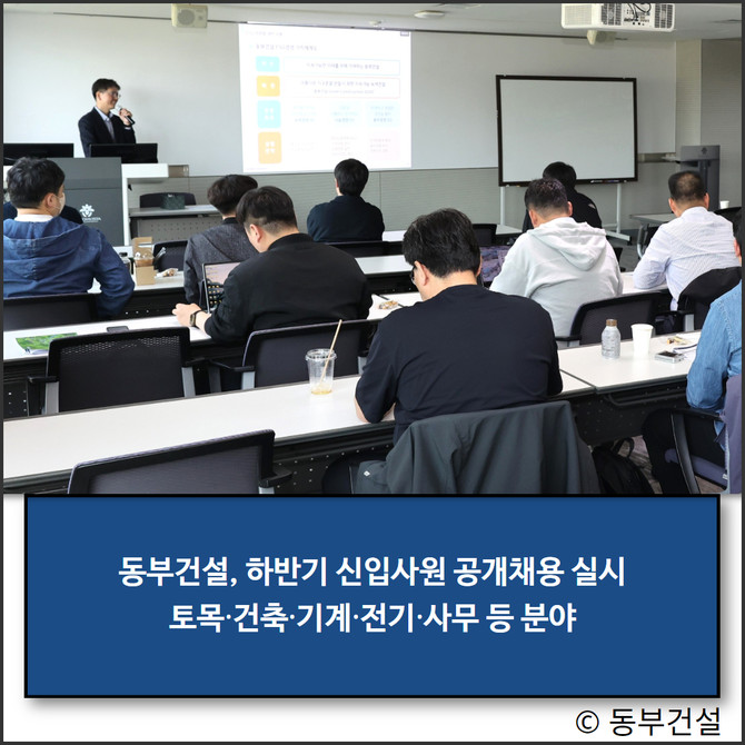 이와 함께 동부건설은 새롭게 입사한 경력사원 26명을 대상으로 지난 24일부터 25일까지 '상반기 경력사원 입문교육'을 실시했다.
