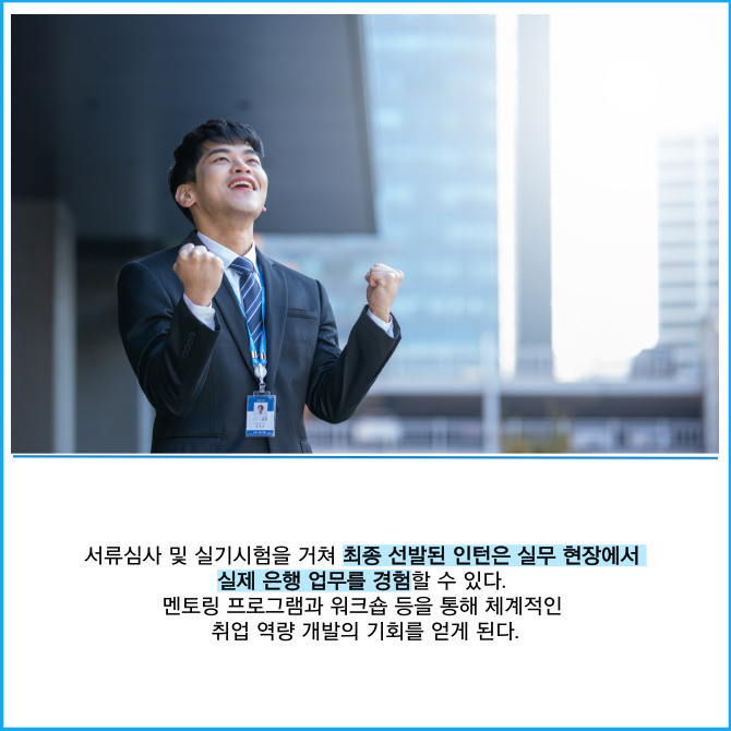 [프라임경제] IBK기업은행(024110)은 오는 7월 전국 영업점 및 본점 부서에 배치될 '2025년 하계 체험형 청년인턴' 370명을 채용한다고 28일 밝혔다.