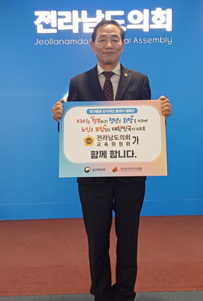 한편, 김정희 전라남도의회 교육위원장의 지목을 받아 캠페인에 참여한 서 의원은 다음 주자로 김광일 전라남도교육청학생교육문화회관 관장과 최정용 전라남도교육청 국제교육원 원장을 지목했다.