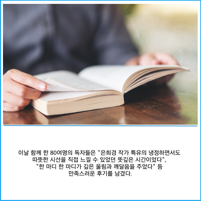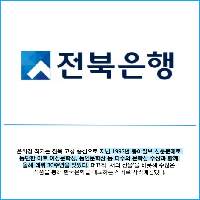 [프라임경제] JB금융그룹 전북은행은 전주 JB문화공간에서 지난 26일 은희경 작가를 초청해 '북토크쇼 : 나의 인생 작가'를 개최했다고 28일 밝혔다.