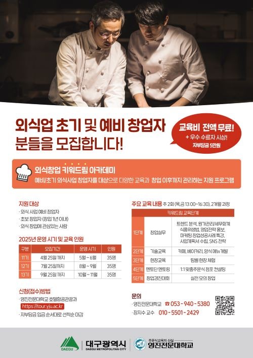 [프라임경제] 영진전문대학교(총장 최재영) 호텔항공관광과가 '외식창업 키워드림 아카데미' 11기 수강생을 오는 5월7일까지 모집한다.