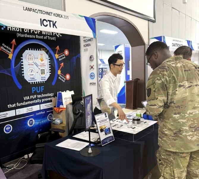 [프라임경제] 차세대 보안 팹리스 기업 아이씨티케이(456010)는 '제7회 한미 연합 세미나·장비전시회(AUSA LANPAC·TECHNET Korea 2025)'에 참가해 PUF 기반 복제방지 보안칩과 솔루션을 선보였다고 29일 밝혔다.