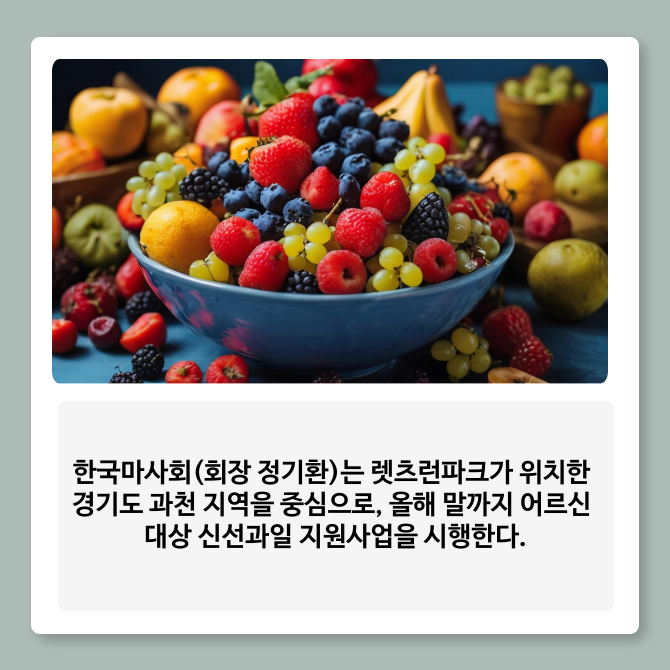 [프라임경제] 한국마사회(회장 정기환)는 렛츠런파크가 위치한 경기도 과천 지역을 중심으로 올해 말까지 어르신 대상 신선과일 지원사업을 시행한다.