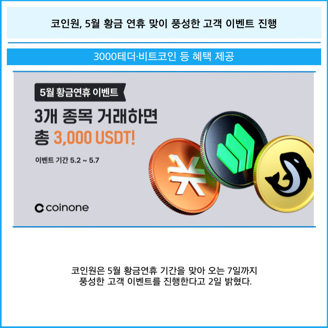 [카드] 코인원, 5월 황금 연휴 맞이 풍성한 고객 이벤트 진행