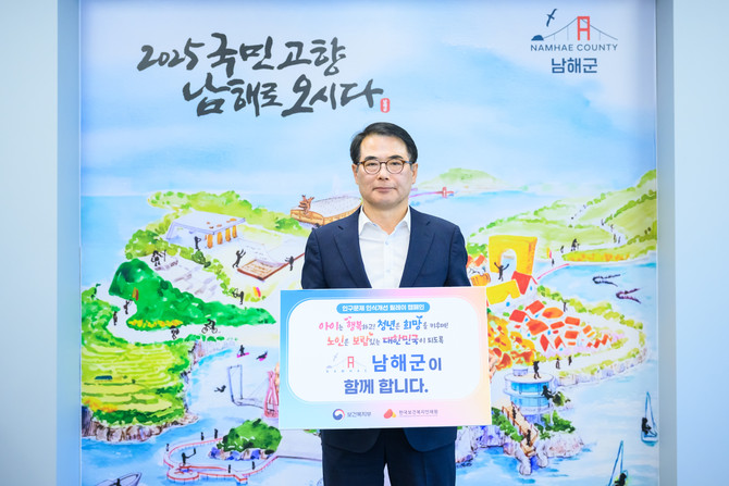 [프라임경제] 장충남 남해군수는 보건복지부 및 한국보건복지인재원이 주관하는 '인구감소와 고령화 문제 해결 캠페인'에 참여했다고 2일 밝혔다.