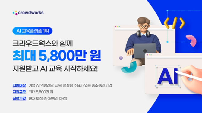 크라우드웍스 관계자는 "기존에도 플랫폼 종사자 특화교육과 연계해 데이터 전문가 양성과정을 실습 중심으로 운영해 큰 인기를 끌었다"며 "최근 기업들의 AI 활용 교육 수요가 빠르게 늘고 있어 올해 교육 관련 매출 목표를 50억원으로 설정했다"고 설명했다.