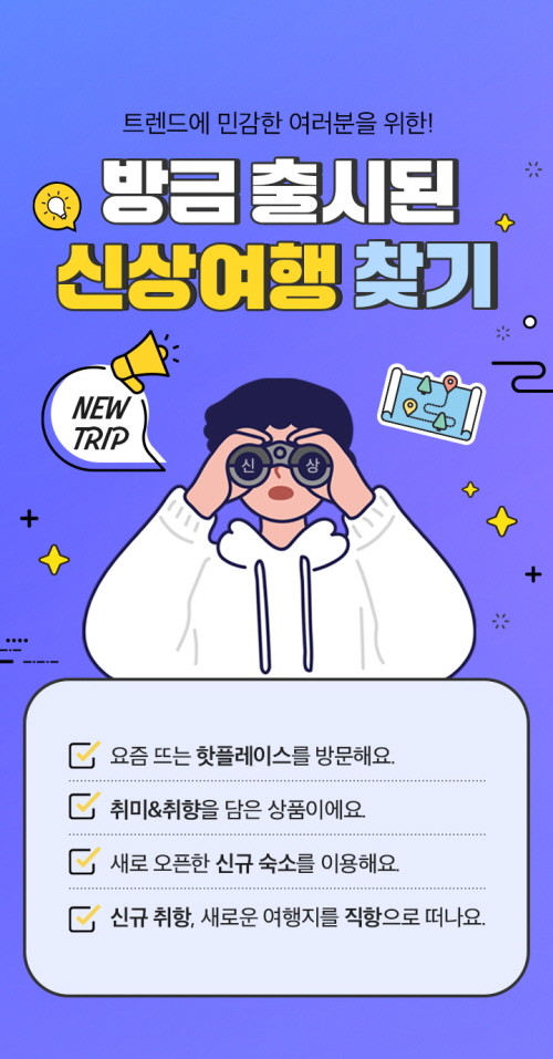 노랑풍선은 고객의 여행 취향 따라 자유롭게 상품을 고를 수 있는 '신상품 기획전'을 오픈했다고 밝혔다.