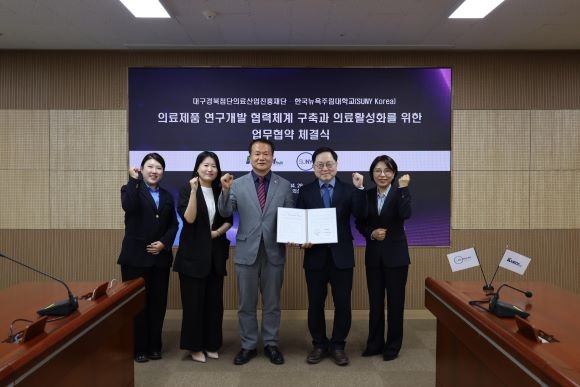 [프라임경제] 케이메디허브(대구경북첨단의료산업진흥재단, 이사장 박구선)가 지난달 28일 한국뉴욕주립대학교 산학협력단과 연구개발 협력체계 구축과 의료산업 활성화를 위한 업무협약을 체결했다.