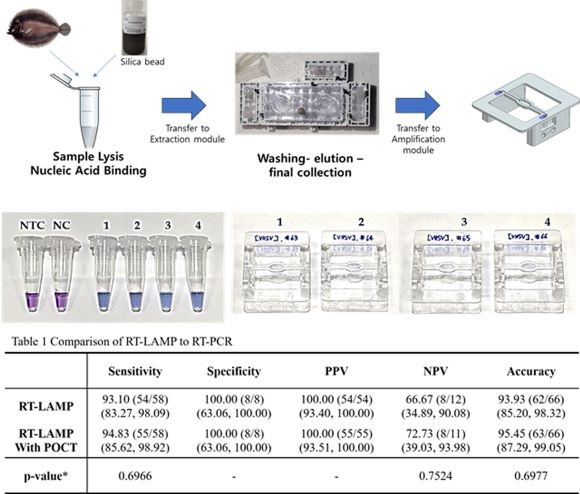 본 연구성과는 'Point-of-Care Diagnostic Modular Device for Detection of VHSV with Reverse Transcription Loop-Mediated Isothermal Amplification(제1저자: 조준민 연구원, 교신저자: 박지웅 박사, 이태재 센터장)'을 제목으로 4월 'Biochip Journal'에 게재됐다.