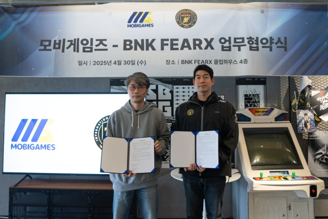 [프라임경제] 종합 미디어 콘텐츠 그룹 모비데이즈(363260)의 게임 전문 자회사 모비게임즈는 e스포츠팀 BNK 피어엑스(FEARX)의 소속사 SBXG와 양사 간 지적재산권(IP) 활용을 통한 공동 마케팅 실현을 위해 전략적 업무협약(MOU)을 체결했다고 7일 밝혔다.