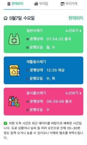 앱은 청소차 도착 정보뿐 아니라 자원순환가게 위치와 운영시간, 포인트 사용 방법 등도 제공한다. 페트병, 캔, 종이팩 등을 모아 자원순환가게에 가져가면 포인트로 적립해 현금처럼 사용할 수 있다.