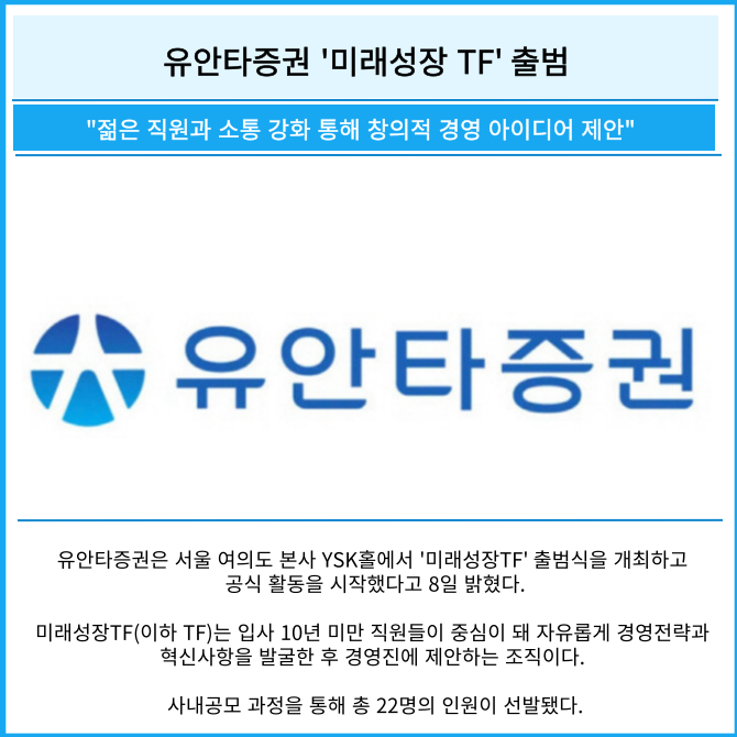 [카드] 유안타증권 '미래성장 TF' 출범
