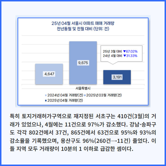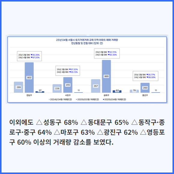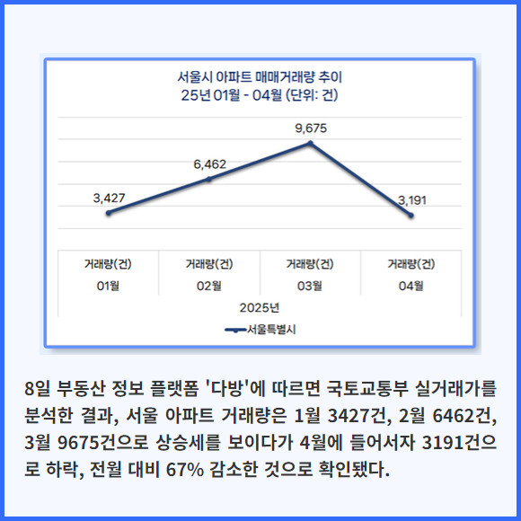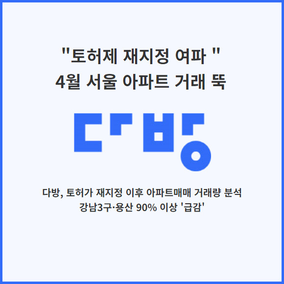 다방, 토허가 재지정 이후 아파트매매 거래량 분석…강남3구·용산 90% 이상 급감