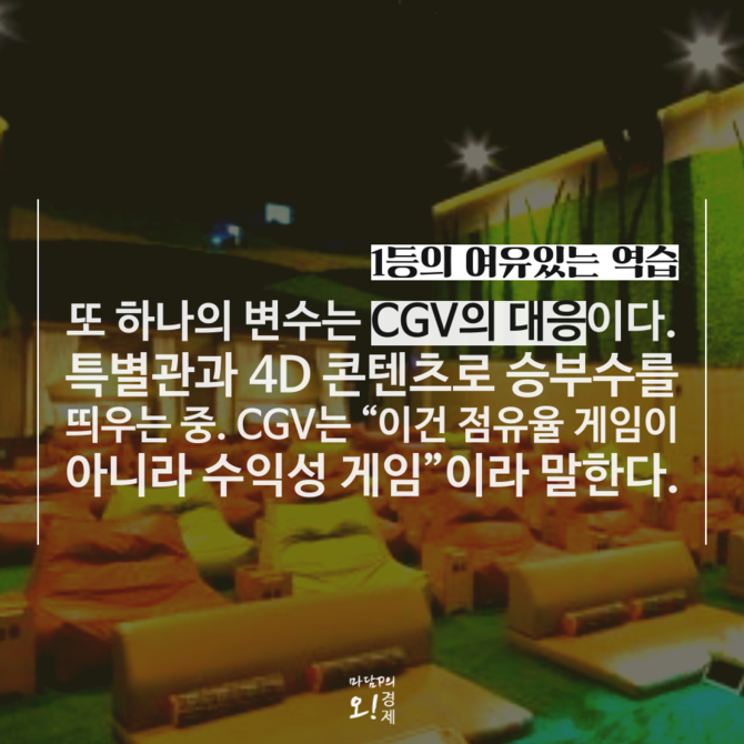 콘텐츠 투자 확대도 과제로 제시됐다. 양사는 자체 보유 IP와 제작 노하우를 활용한 영화 투자 확대를 예고하며 OTT와의 차별화를 위해 특별관 확대, 고객 경험 강화에도 나선다는 입장이다.