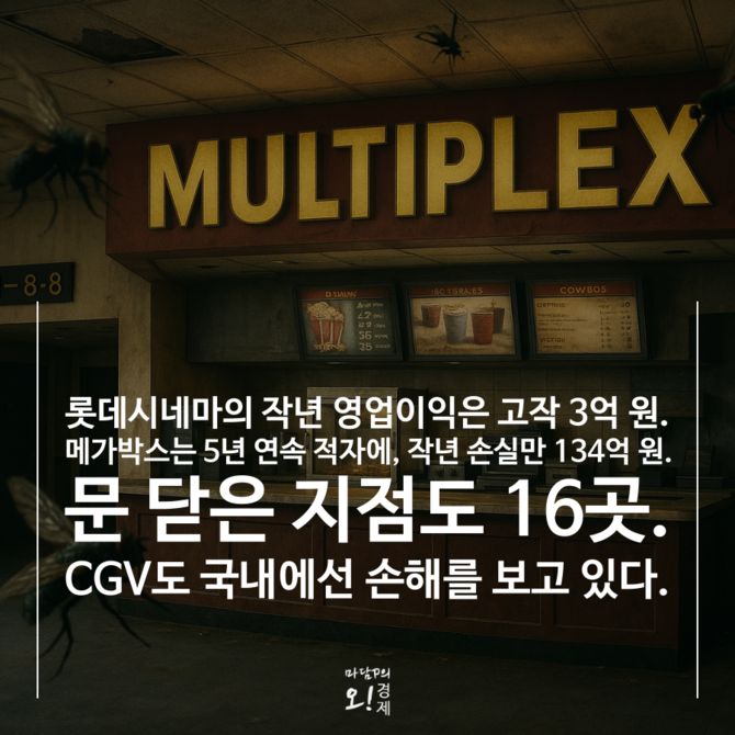 지난해 롯데시네마 영업이익은 3억원에 그쳤고 메가박스는 134억원 적자를 내며 5년 연속 적자를 이어갔다.