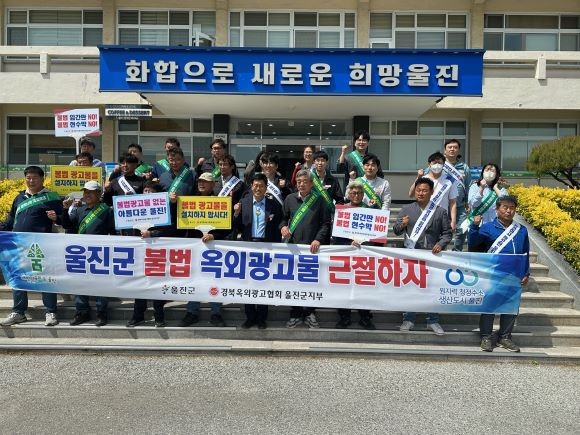 이날 캠페인에 참석한 군청 공무원과 경북옥외광고 울진군지부 회원 등 30여 명은 울진군청에서 불법 옥외광고물 근절 결의대회를 시작으로 연호공원까지 가두 행진을 하며, 불법옥외광고물를 교차로 등에 설치해 교통사고 등의 유발 위험성과 문제점을 알렸다.