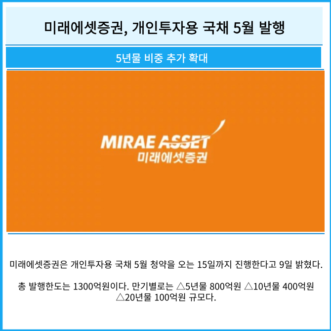 [카드] 미래에셋증권, 개인투자용 국채 5월 발행