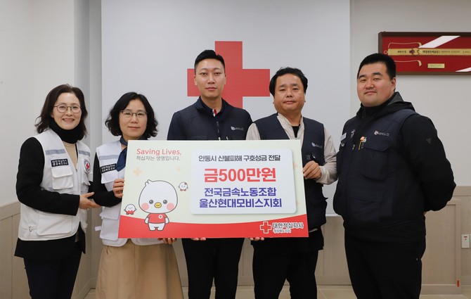 [프라임경제] 대한적십자사 경북지사(회장 김재왕)는 9일, 전국금속노조 울산현대모비스지회(지회장 박유종)로부터 경북 산불 피해 이재민을 위한 성금 500만원을 전달받았다고 밝혔다.