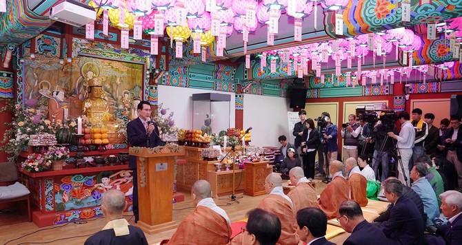 이번 친견법회는 2023년 10월, 대법원이 해당 불상의 소유권을 일본 대마도 관음사에 있다고 판결한 이후, 부석사의 간곡한 요청에 따라 관음사가 이를 허용하면서 성사됐다. 이에 따라 금동관세음보살좌상은 지난 1월24일부터 5월5일까지 부석사 설법전에 봉안되며 약 4만여 명의 불자와 시민이 불상을 친견했다.