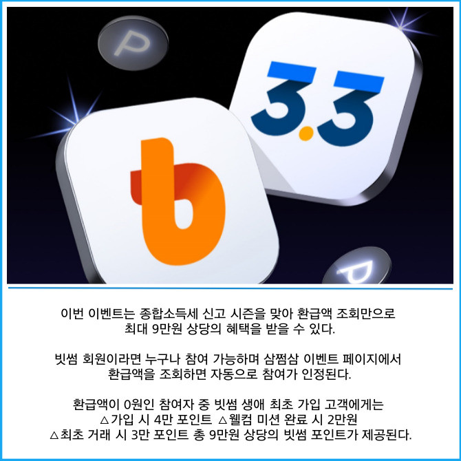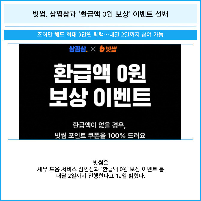 [카드] 빗썸, 삼쩜삼과 '환급액 0원 보상' 이벤트 선봬