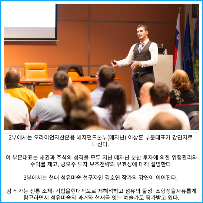 이번 세미나는 금융시장의 최신 투자 전략과 예술적 영감을 동시에 경험할 수 있도록 기획됐다.