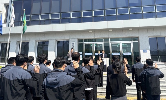 이날 선포식에서는 신입직원이 대표로 미션·비전 달성을 위한 선언문을 낭독하며, 전 직원이 함께 진주시민의 신뢰와 사랑을 받는 공기업이 되겠다는 각오를 다졌다.