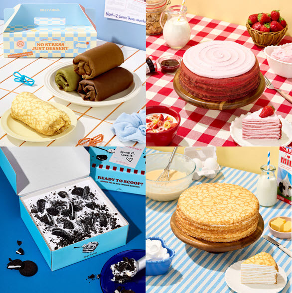 이 외에도 △빌리엔젤의 인기 케이크 6종을 한 번에 맛볼 수 있는 '버라이어티팩' △빌리엔젤 베스트셀러인 '밀크 크레이프 케이크 2호'(9% 할인) △딸기 크레이프 케이크 2호 △6가지 컬러와 맛이 어우러진 '레인보우 크레이프 케이크 1호'(7% 할인) 등이 무료배송으로 제공된다.